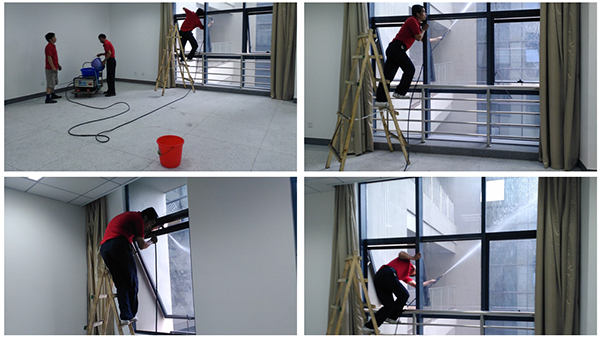 由內(nèi)往外,由上往下、由難到易包括玻璃、墻面、地面等;